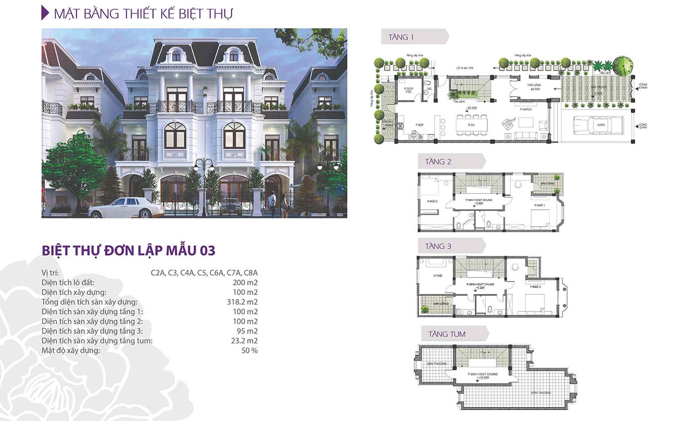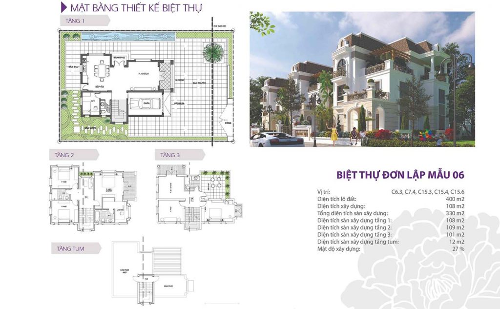 Ở giai đoạn 3 dự án với phần lớn là diện tích 200m2 và 400m2 thì chúng ta có được 6 mẫu thiết kế điển hình như dưới đây